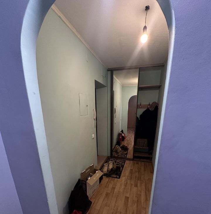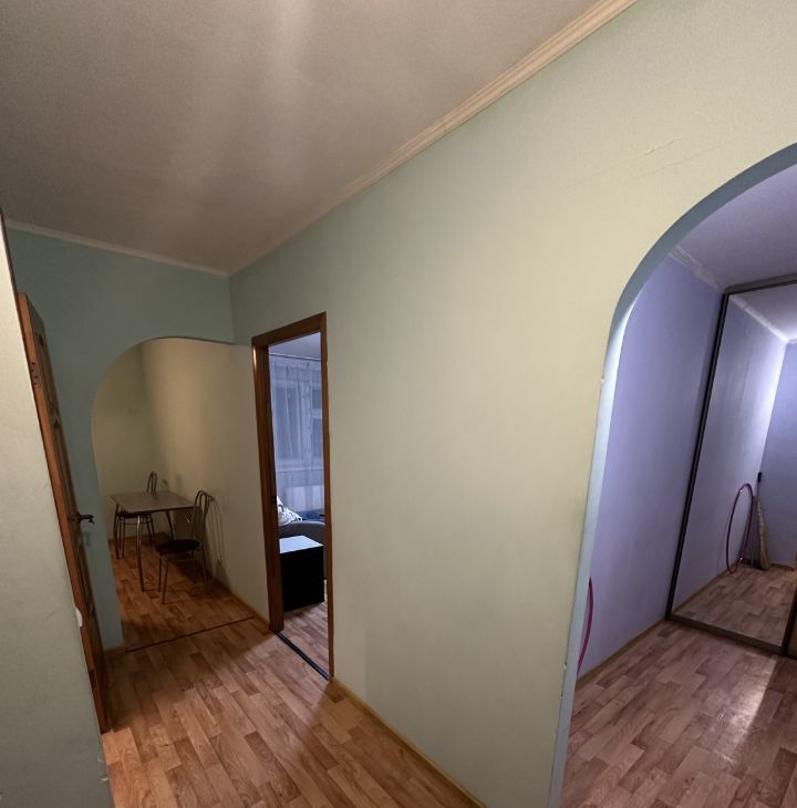 Квартира после косметического ремонта, светлая и комфортная для проживания. В комнате и на кухне есть вся необходимая мебель. Из техники — холодильник, телевизор и стиральная машина. Планировка включает совмещённый санузел с ванной, а также просторную кухню площадью 10 кв. м. и гардеробная
