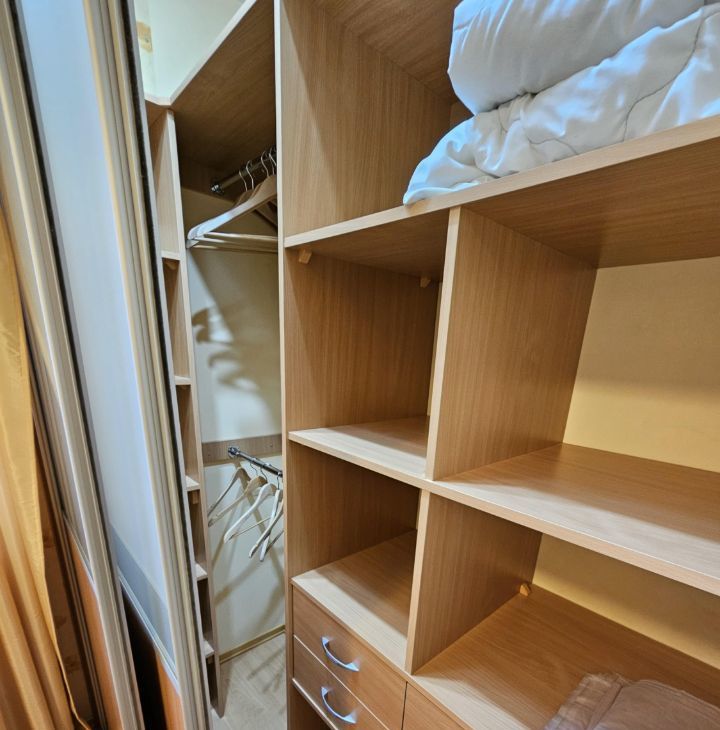Ремонт был сделан по индивидуальному дизайн-проекту качественными материалами. Получилась планировка "1+", т.е. кухня-гостиная с выходом на застекленную лоджию, спальня с гврдеробной комнаткой и рабочим местом, совмещенный просторный санузел и просторная прихожая.