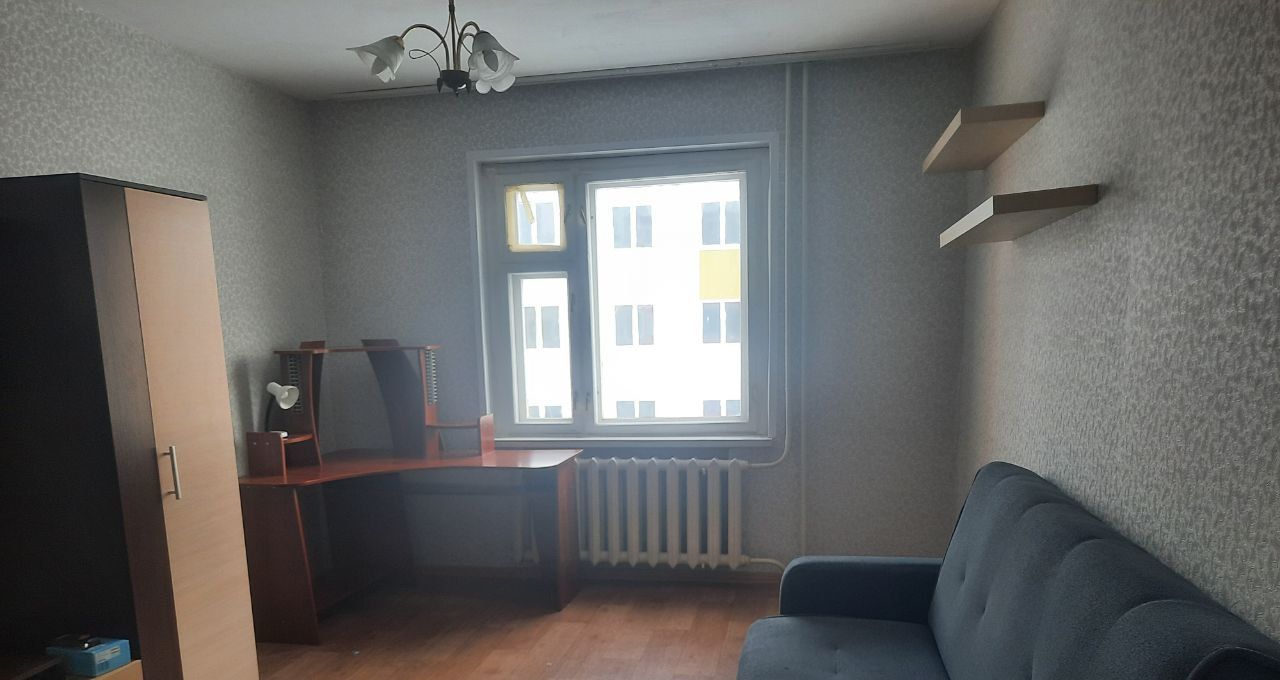 Квартира расположена на 4 этаже панельного дома, построенного в 2001 году. В квартире выполнен косметический ремонт. Просторная комната оборудована шкафами и вместительным стеллажом, что позволяет удобно хранить вещи. Из мебели также имеется удобный диван и письменный стол.