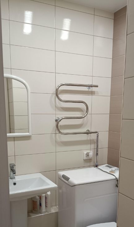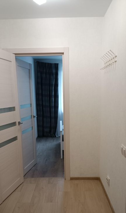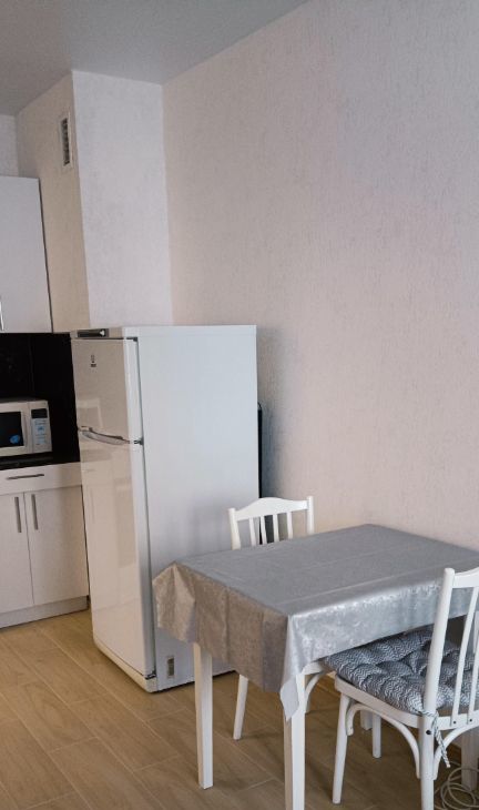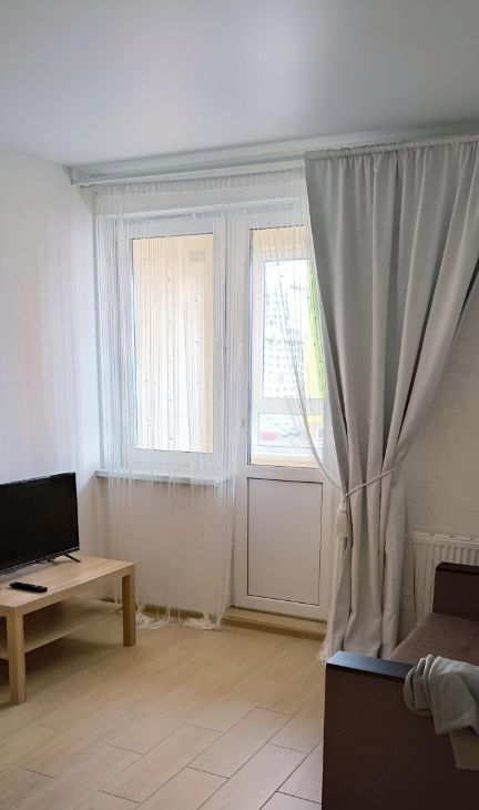 В квартире есть все необходимое для жизни: в комнате и на кухне есть мебель, а также необходимая техника — холодильник, телевизор, стиральная машина. Ремонт и мебель выполнены в светлых оттенках, поэтому жилье выглядит свежо и аккуратно. Санузел совмещенный, с ванной. Из окон открывается вид на улицу, а также есть лоджия для отдыха и хранения вещей.