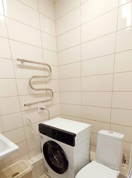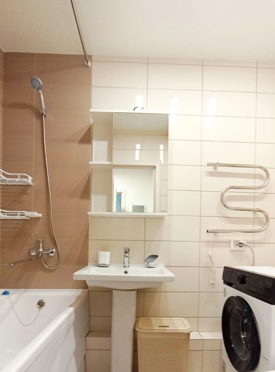 В ванной установлена стиральная машина.