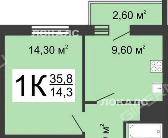 Сдается от агентства 1-комнатная квартира 36/15/9 на 6/23эт.дома.