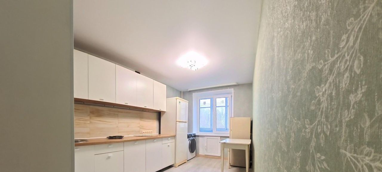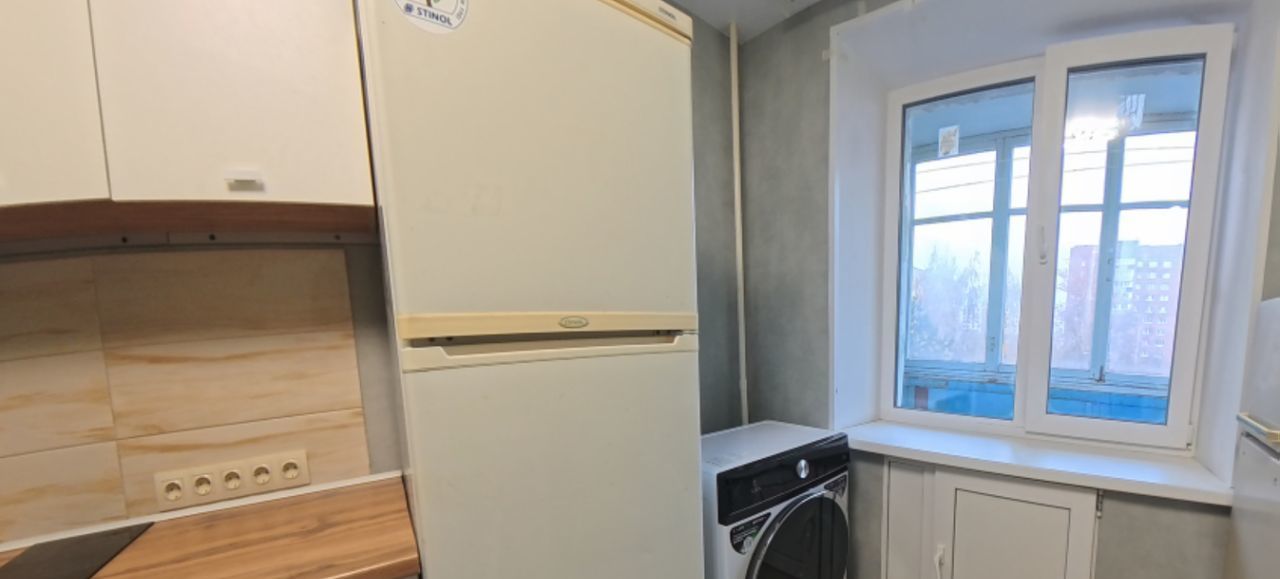 Есть вся необходимая мебель на кухне и в комнате: диван, письменный стол , вместительный шкаф с зеркальными дверями, кухонный стол, кухонный гарнитур, а также бытовая техника: холодильник и стиральная машина. Только что сделан ремонт.