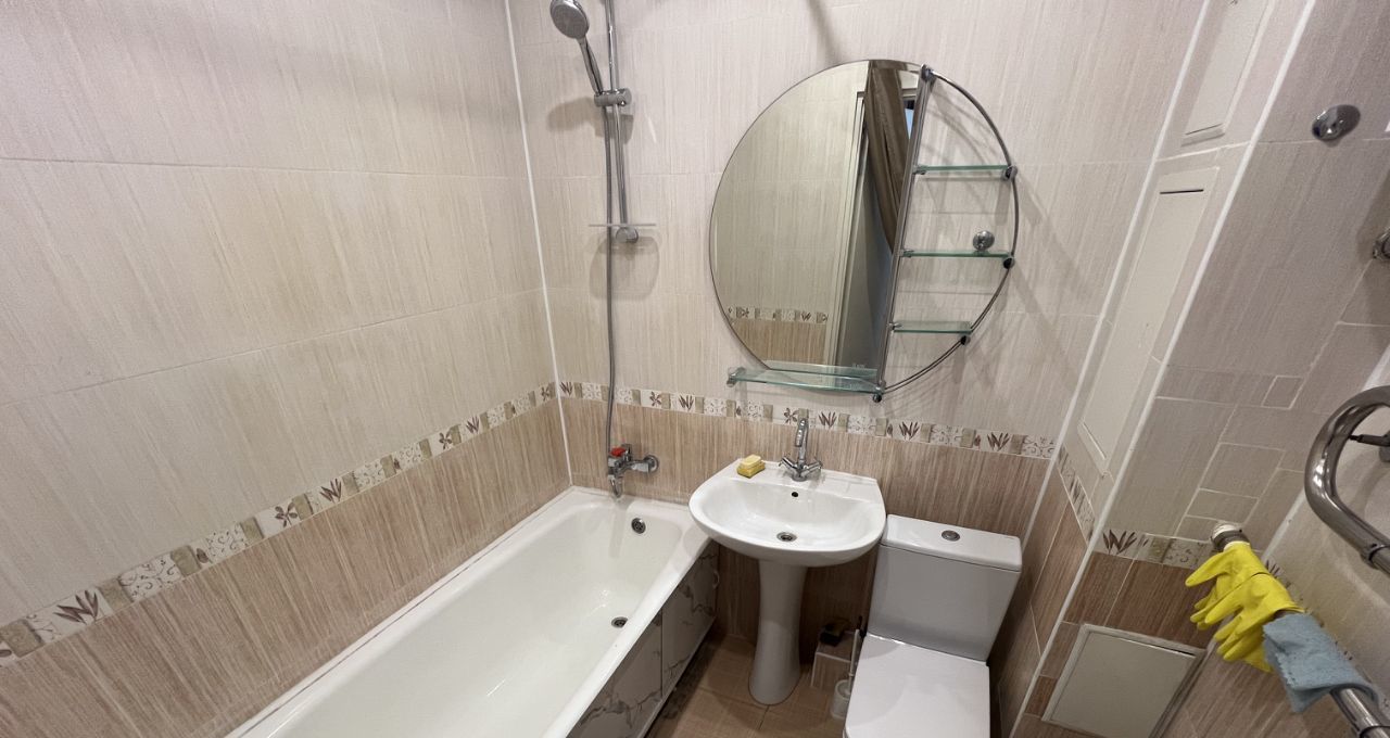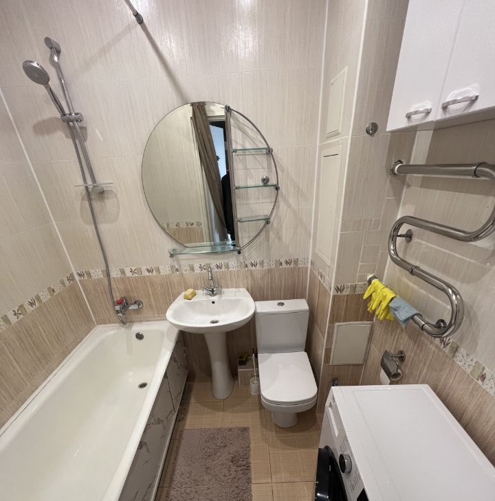 Квартира в отличном состоянии с евроремонтом. В комнате и на кухне есть необходимая мебель, поэтому вы сможете сразу заселиться. Просторная кухня площадью 10.9 кв. м оборудована холодильником и всем необходимым для удобного приготовления пищи. Ванная комната оснащена ванной и стиральной машиной, совмещенный санузел создает дополнительное удобство.