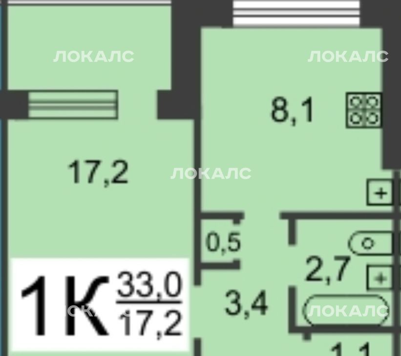 1-к кв. Нижегородская область, Нижний Новгород Народная ул., 48 (33.2 м²)