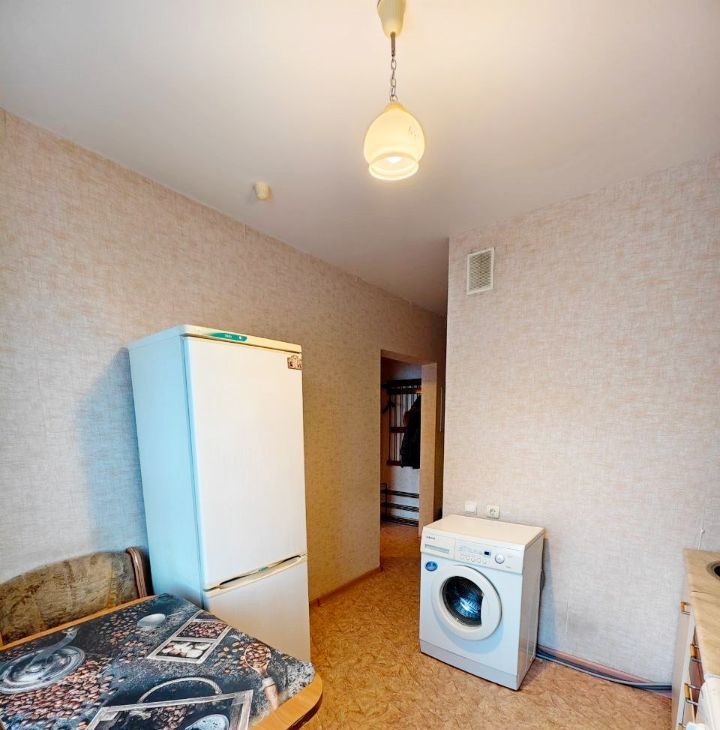 Есть необходимая мебель и бытовая техника (кухонный гарнитур, стиральная машина автомат, холодильник, стенка в комнате) Нет сального места.