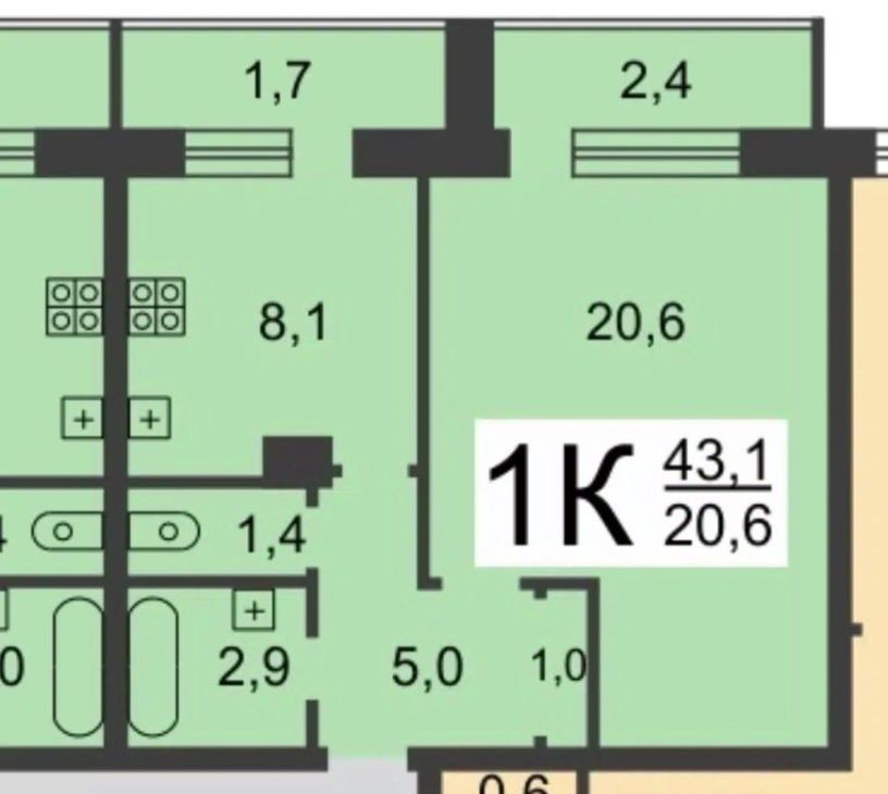 Студия Нижегородская область, Нижний Новгород ул. Спутника, 42 (17.1 м²)