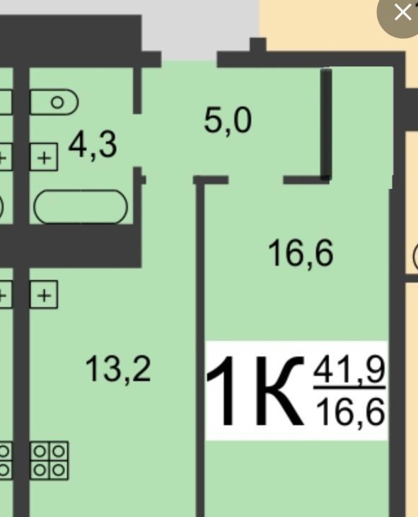 Студия Нижегородская область, Нижний Новгород ул. Героя Советского Союза Аристархова, 10 (32.0 м²)