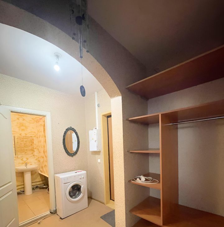 В квартире есть: диван, шкаф, микроволновая печь, стиральная машина, небольшая гардеробная.