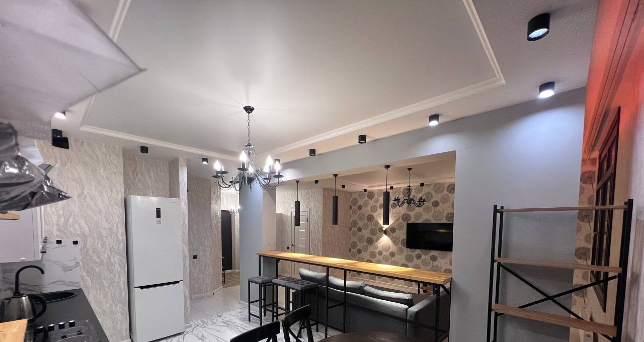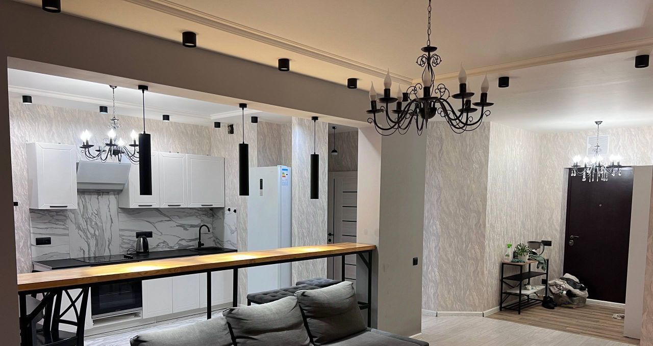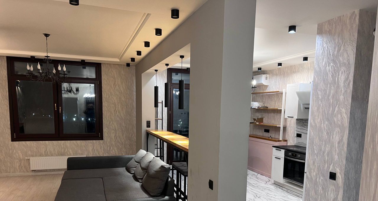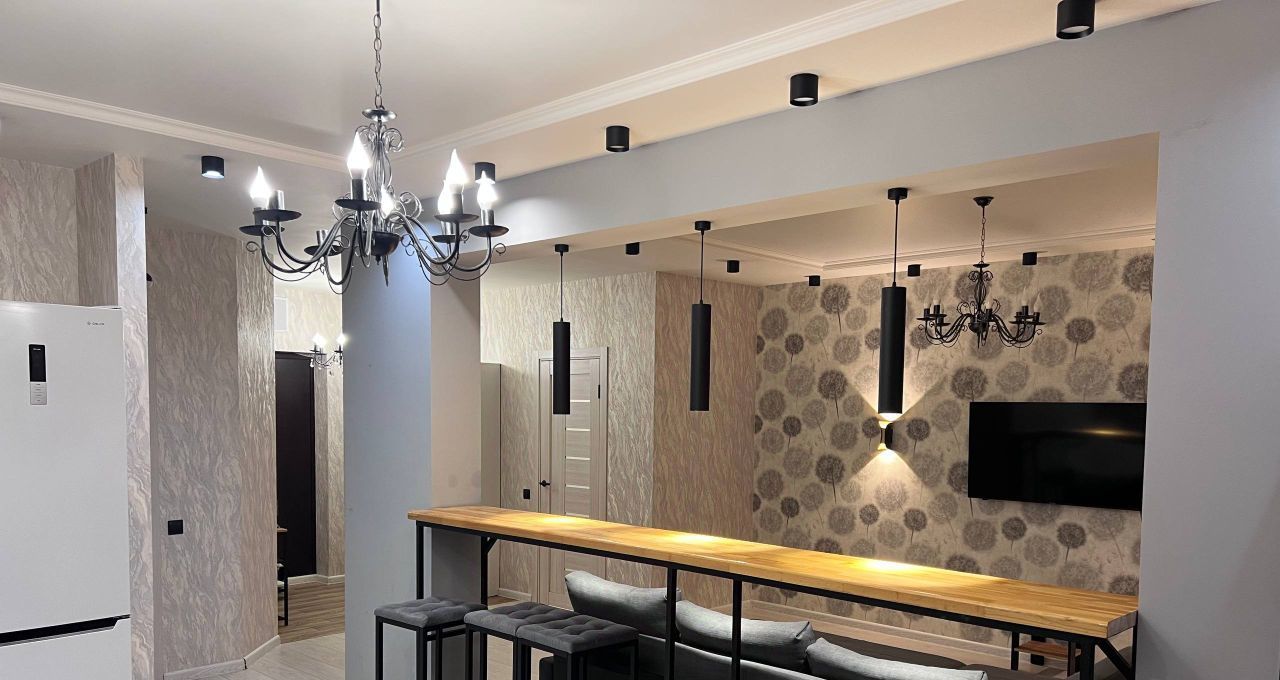 Сдается в аренду стильная однокомнатная квартира в ЖК Атлант с дизайнерским ремонтом! Общая площадь 60 кв. м, квартира расположена на 5-м этаже нового 27-этажного дома 2021 года постройки. Высокие потолки в 2.8 метра и большие окна, выходящие на улицу, создают ощущение простора и света.