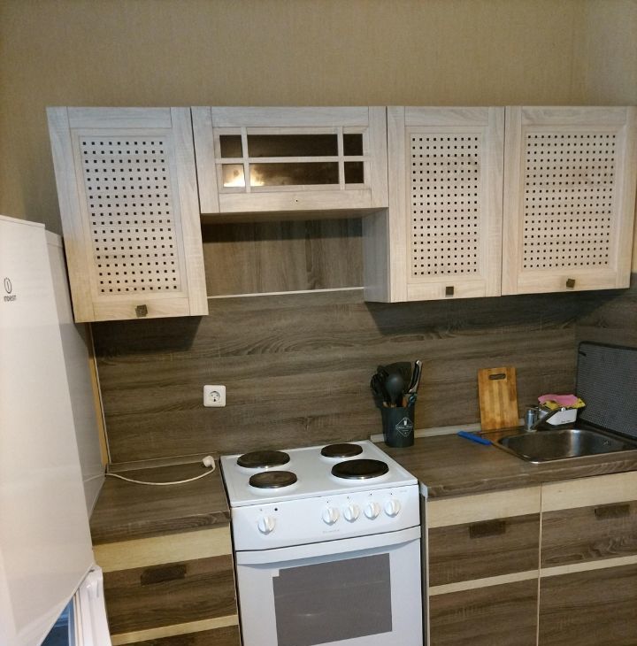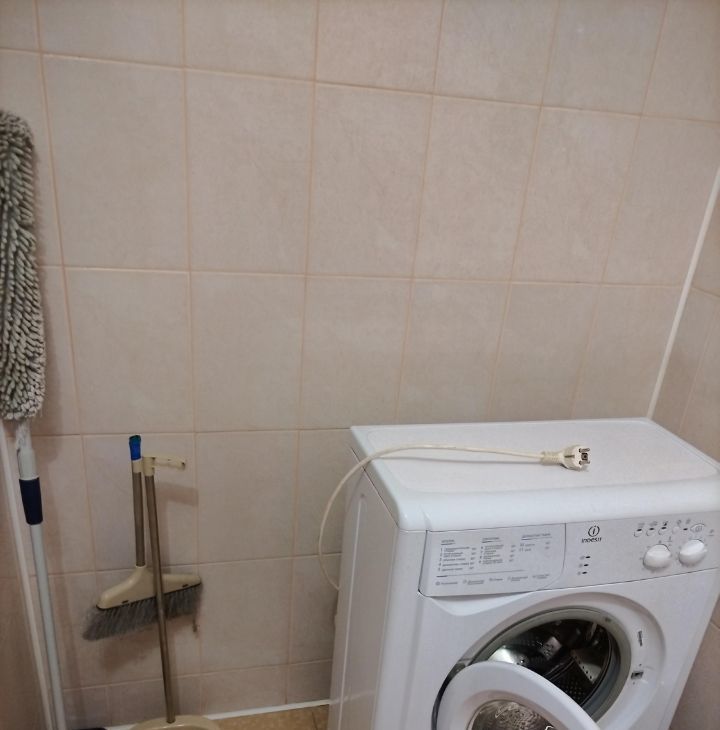 Бельё, пocуда , бытовая химия, телевизор-ваши. В квартире есть диван, шкаф купе, кухонный гарнитур, электроплита. Из техники-стиральная машинка, холодильник