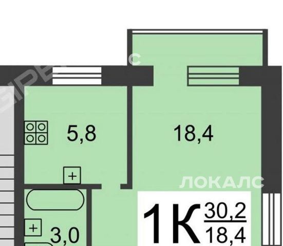 Сдаю от агентства 1-комнатную квартиру 30/18,4/5,8 Высоковский проезд на 3/4-этажного дома.