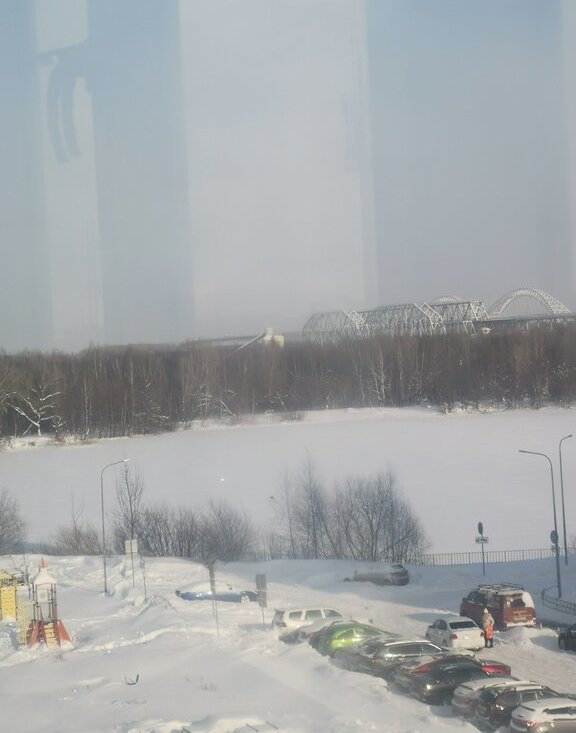 Из окон открывается, панорамный вид на мост через Волгу и воду.