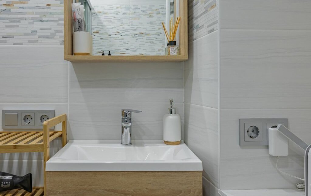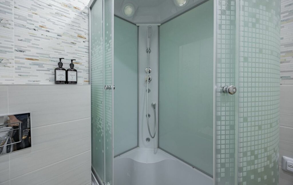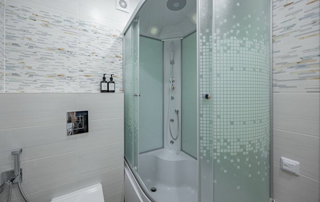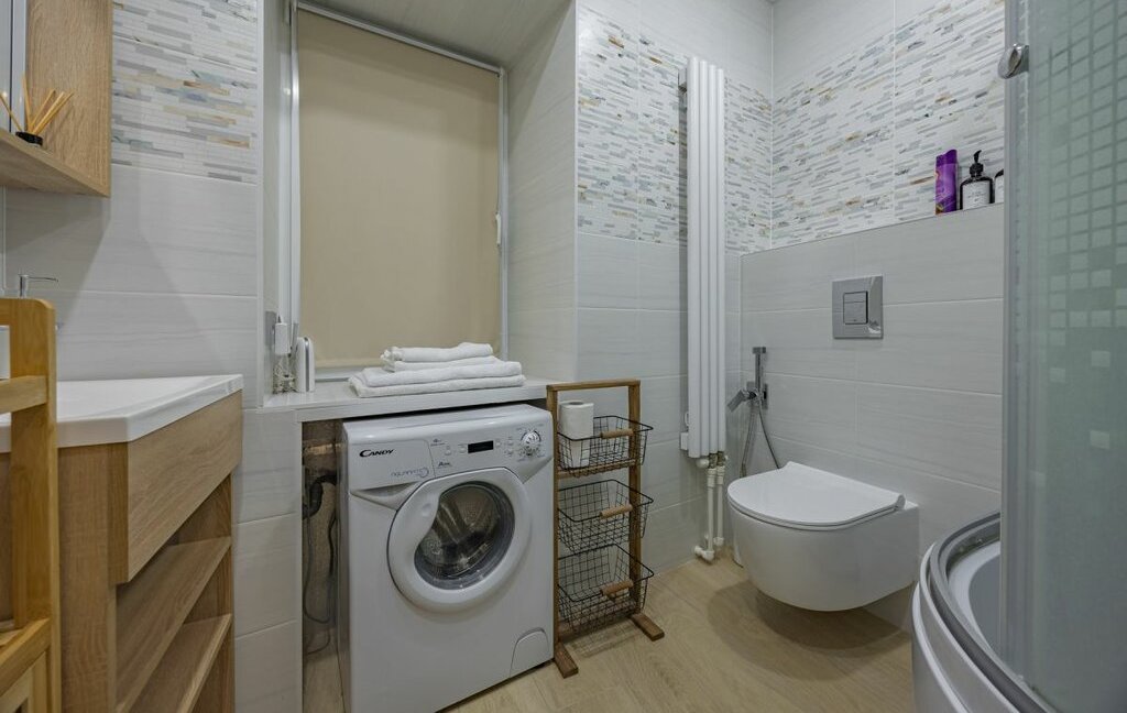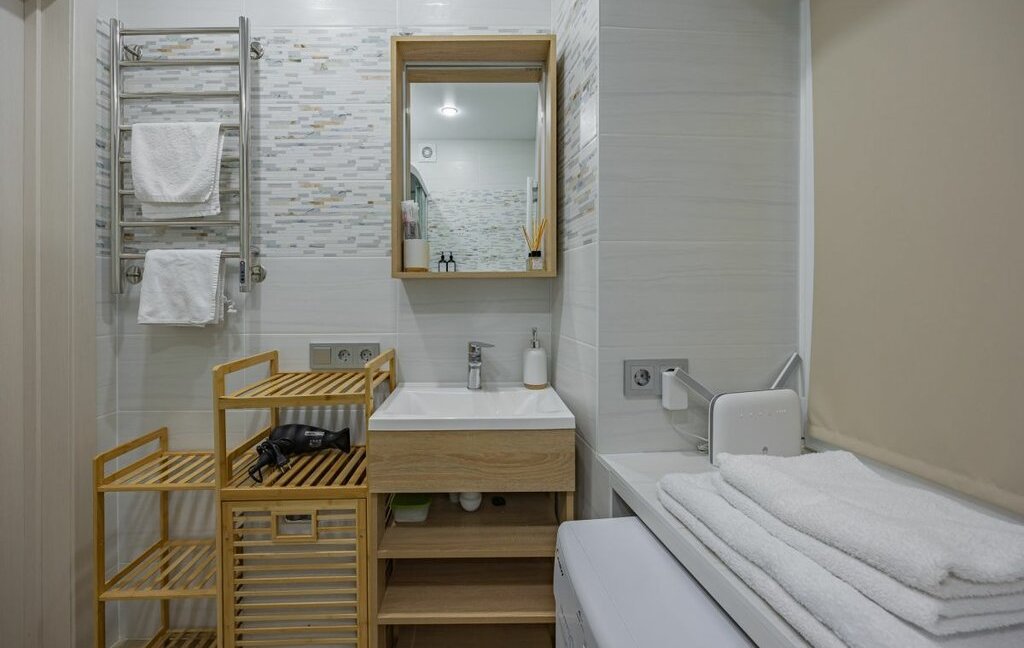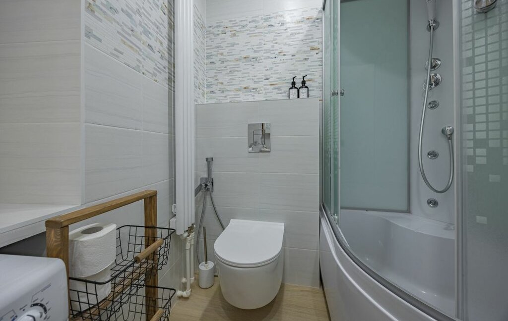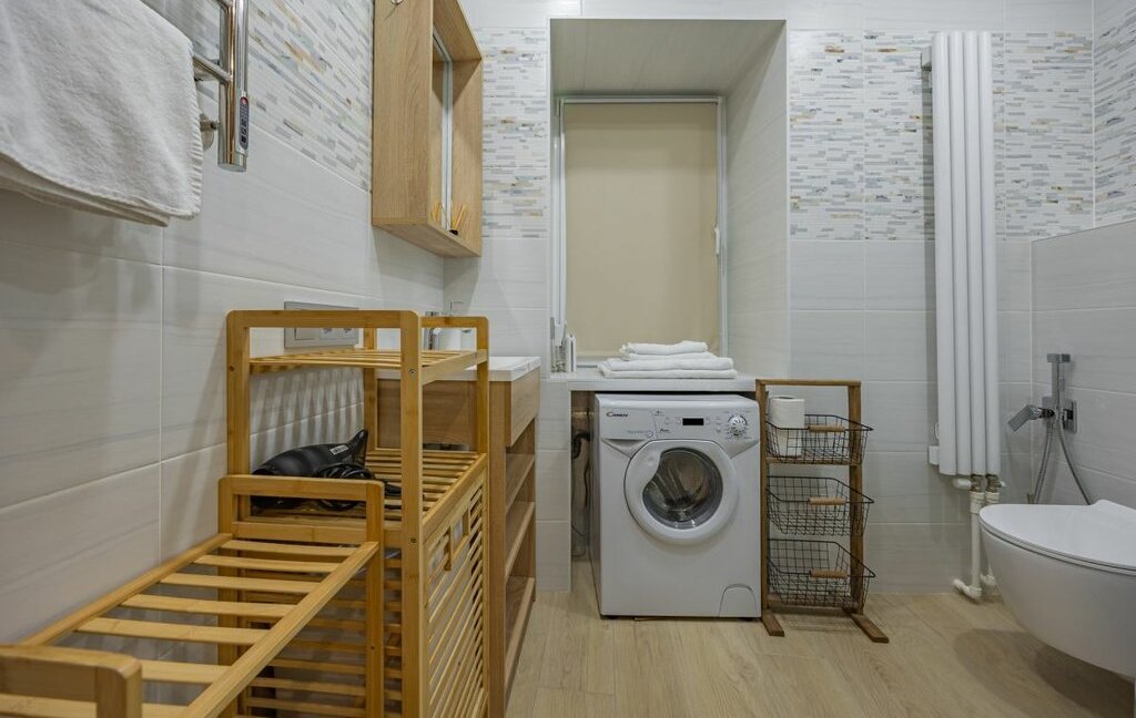 - Санузел совмещенный, с душевой кабиной, феном, стиральной машиной, утюгом, средством для стирки.