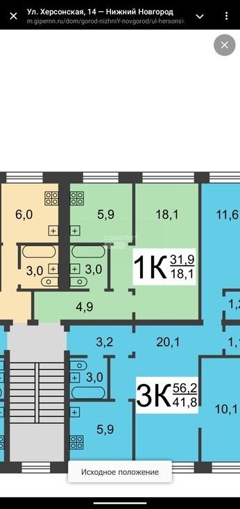 1-к кв. Нижегородская область, Нижний Новгород Херсонская ул., 14 (32.1 м²)