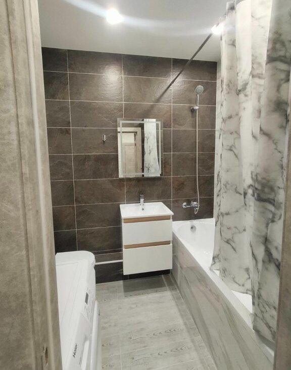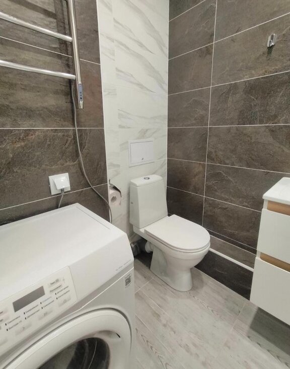 В сан. узле - стиральная машина и всё необходимое.