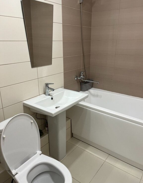 - Санузeл: cовмeщенный, плитка по всей площади.