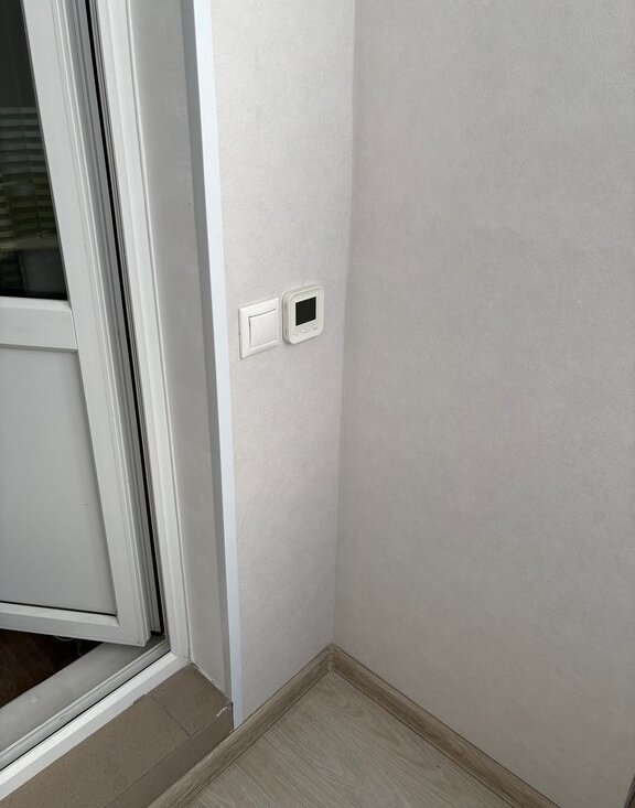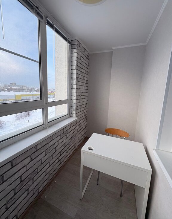 На просторном балконе сделан кабинет с теплый полом, как отдельная комната