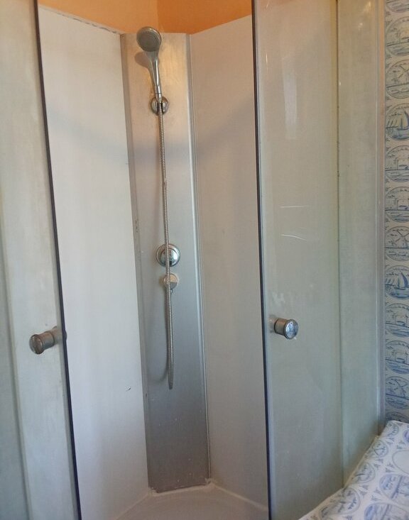 Сан узел раздельный,душевая расположена на кухне.