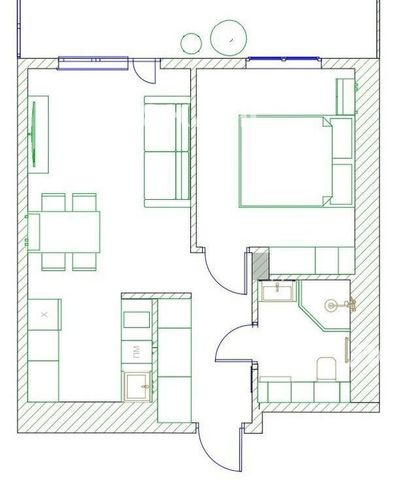 • По планировке - евродвушка - уютная спальня и функциональная кухня-гостиная. Кухня спрятана в нише: рабочая зона визуально изолирована от зоны отдыха, при этом остается простор однообъемного помещения - почти 20м2. Будет максимально удобно для проживания одного человека или супружеской пары