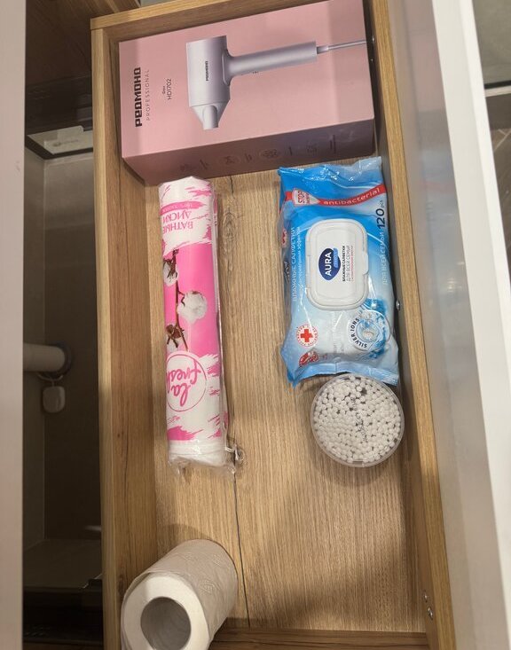 Ванная комната: полотенца, фен, мыльные принадлежности (шампунь, гель).