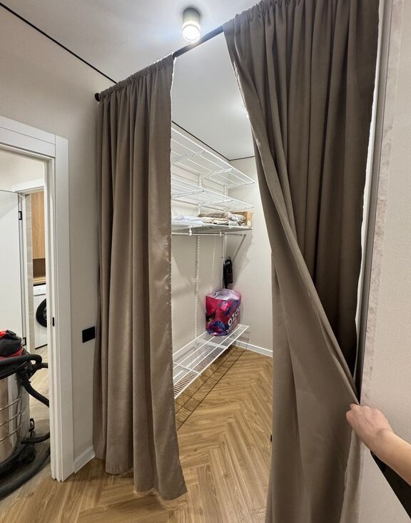 Планировка: Просторная кухня-гостиная с лоджией и отдельная спальня с большой гардеробной для ваших вещей.