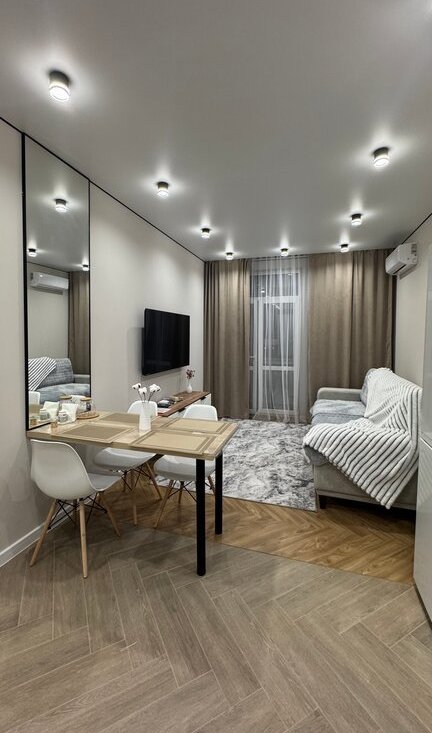 Эта квартира в новом доме бизнес класса идеально подойдет для тех, кто ценит комфорт, эстетику и высоту последнего 24 этажа.