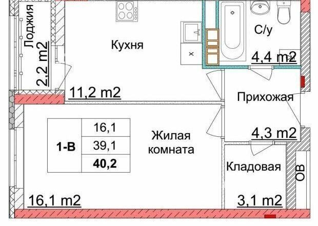 1-к кв. Нижегородская область, Нижний Новгород Ошарская ул., 39а (34.1 м²)