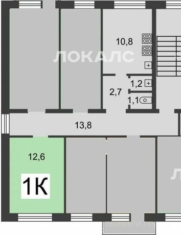 1к в 4-комнатной квартире (12.6 м²)