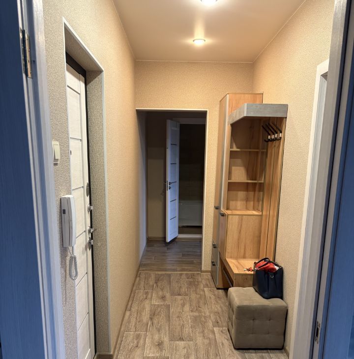 В комнате и в прихожей достаточно мест для хранения вещей и одежды: встроенные шкафы-купе, кухня оснащена современным кухонным гарнитуром, посудомоечной машиной, холодильником. В ванной стиральная машина , в спальной кондиционер. В подъезде чисто.