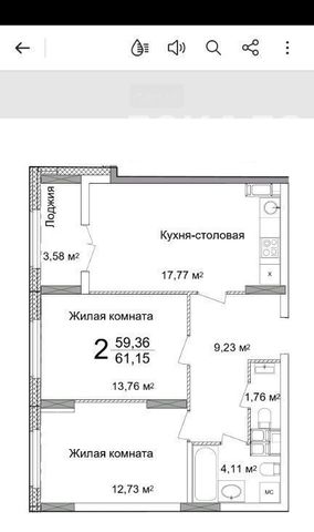 2-к кв. Нижегородская область, Нижний Новгород ул. Бориса Корнилова, 3к3 (60.0 м²)