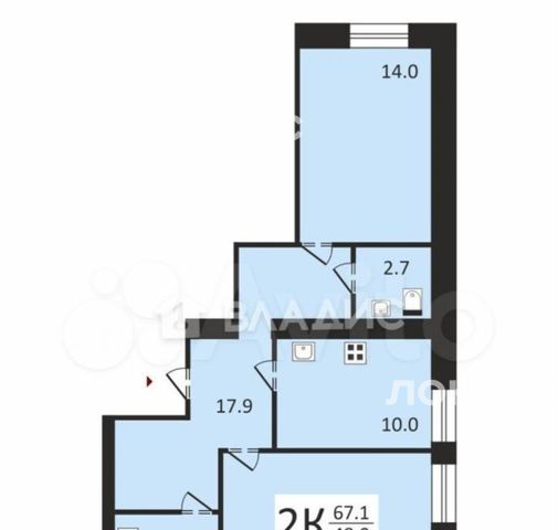 2-к кв. Нижегородская область, Нижний Новгород Аэродромная ул., 28 (67.1 м²)