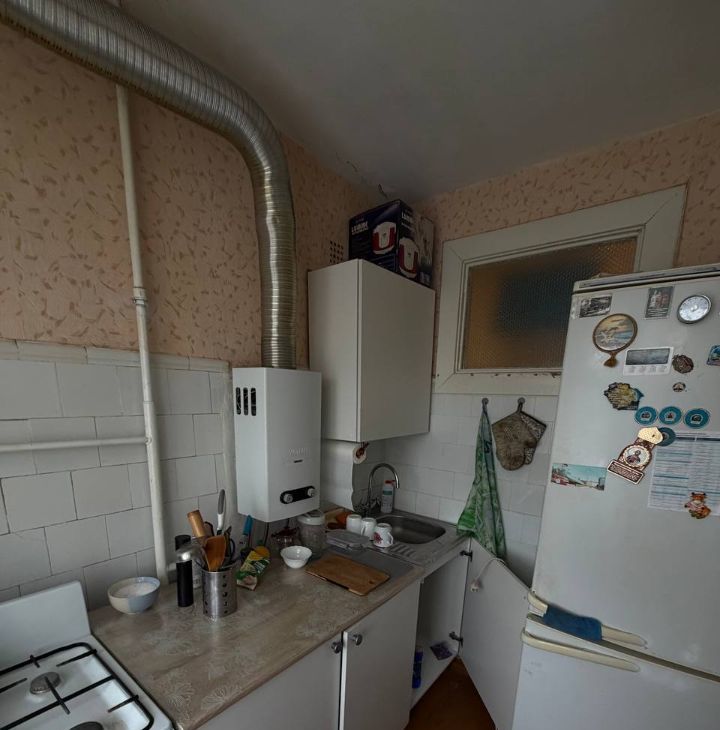 Комнаты смежные, санузел совмещённый. Кухня оборудована необходимой техникой, включая холодильник и газовую плиту, имеется газоснабжение.