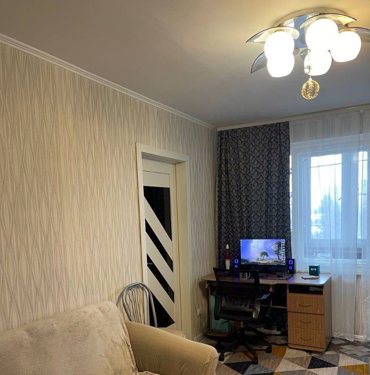 Квартира расположена на 7 этаже панельного дома 1975 года постройки. В квартире выполнен дизайнерский ремонт, комнаты изолированы. Из бытовой техники имеется телевизор.