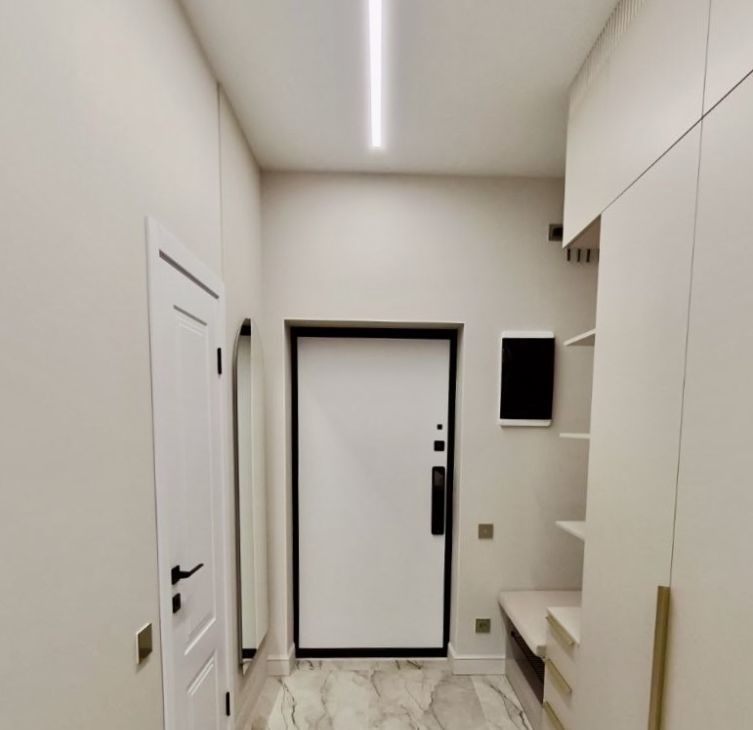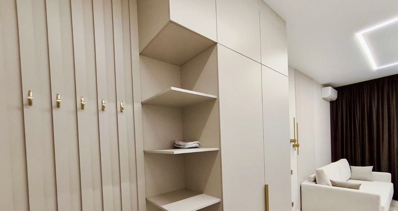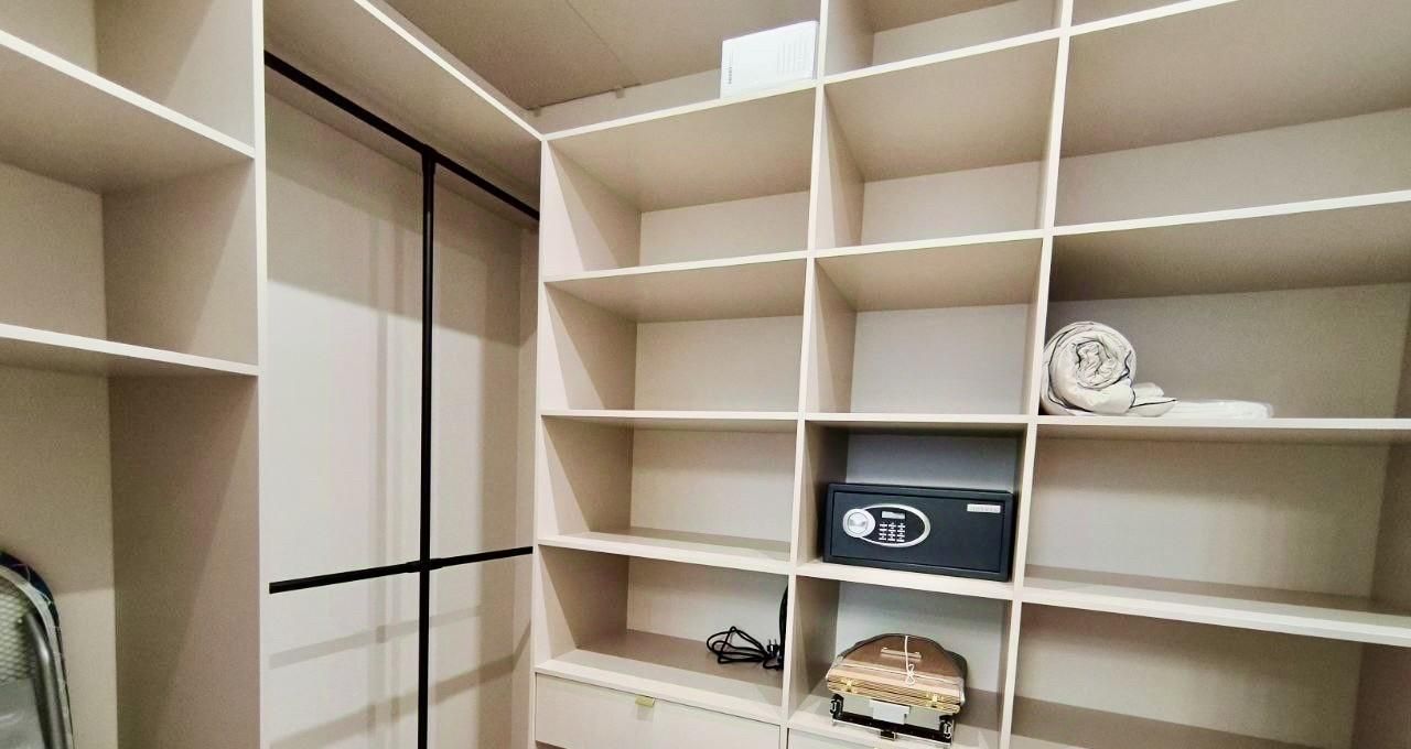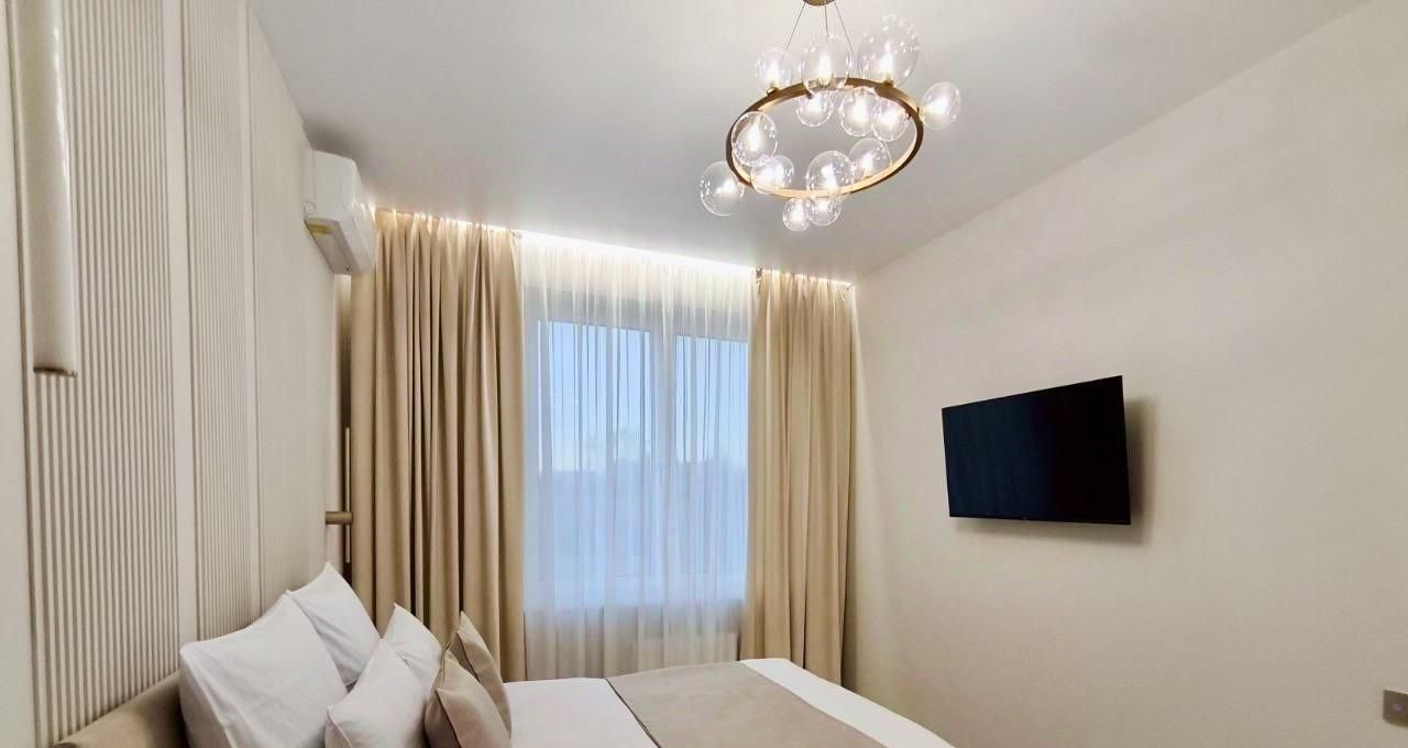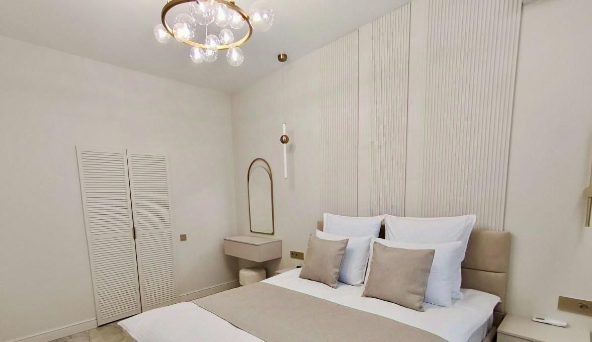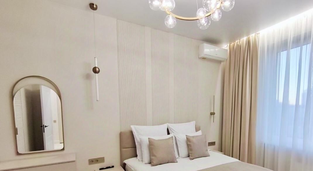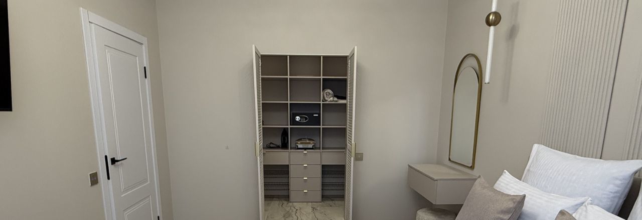 Спальня оборудована объемной гардеробной для хранения вещей, косметическим столиком, кондиционером, ТВ со смарт-tv, подушки, одеяла в комплекте, матрас с умной памятью.