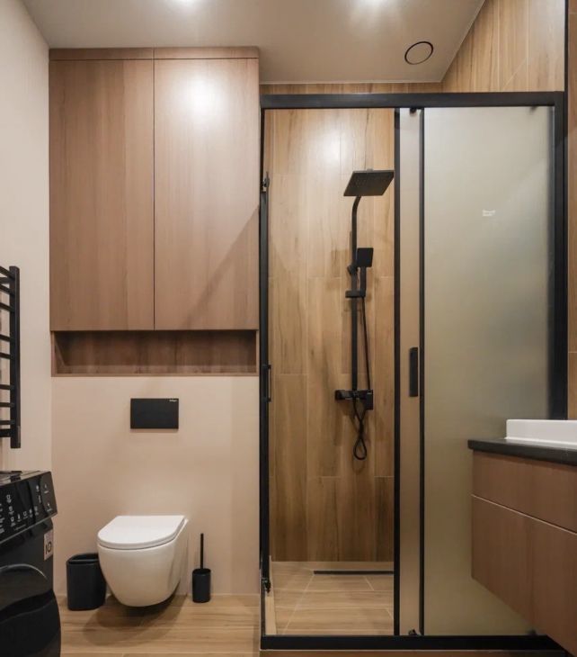 Ванная комната: стильная душевая кабина.