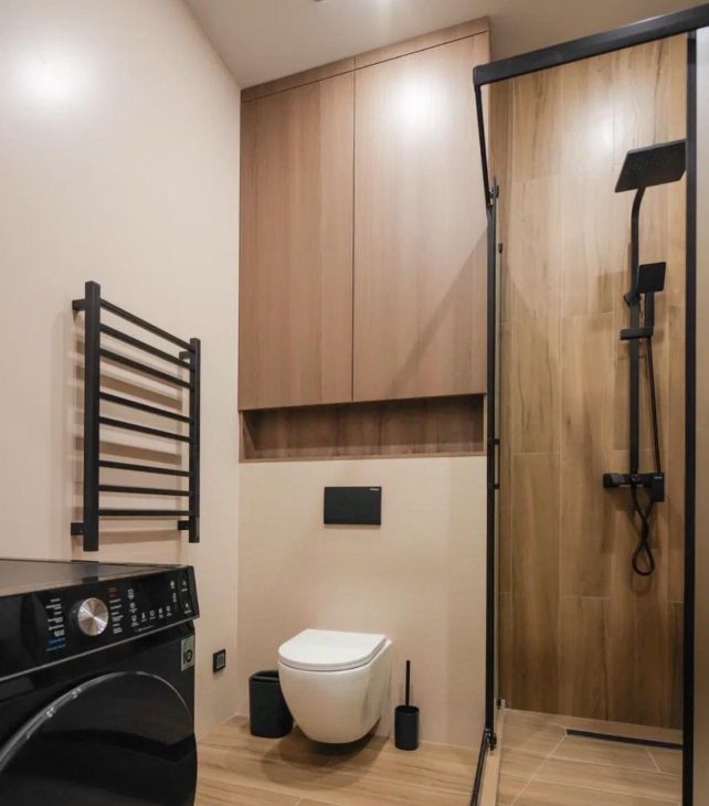 Комфорт: телевизор, стиральная + сушильная машины, робот-пылесос.