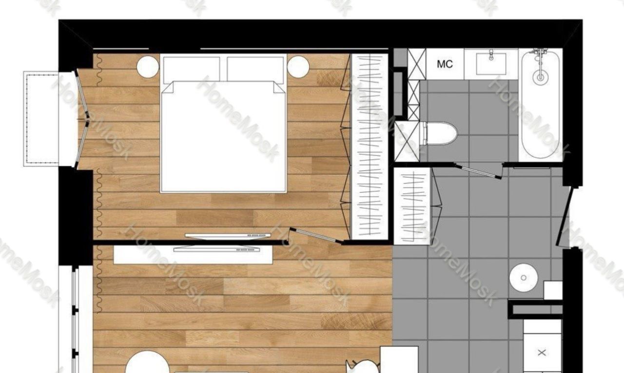 Планировка: кухня-гостиная, спальня, санузел совмещенный, балкон с выходом из спальни с видом на Покровскую улицу.