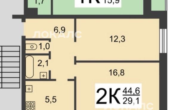 2-к кв. Нижегородская область, Нижний Новгород Большая Покровская ул., 73 (44.0 м²)