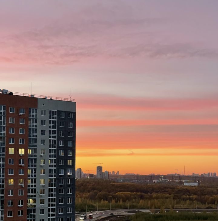Шикарный вид вод двор. Дом напротив находится далеко и можно наблюдать прекрасные закаты.