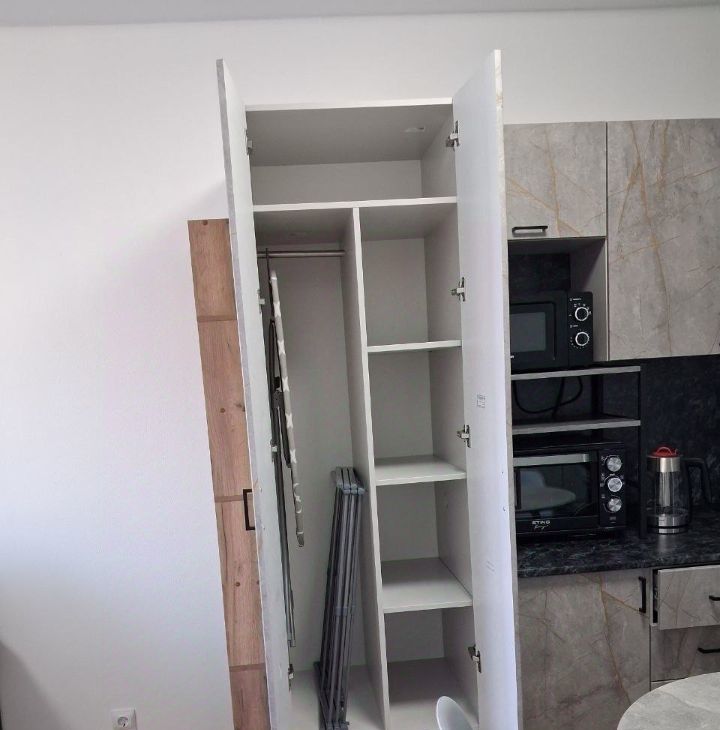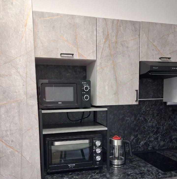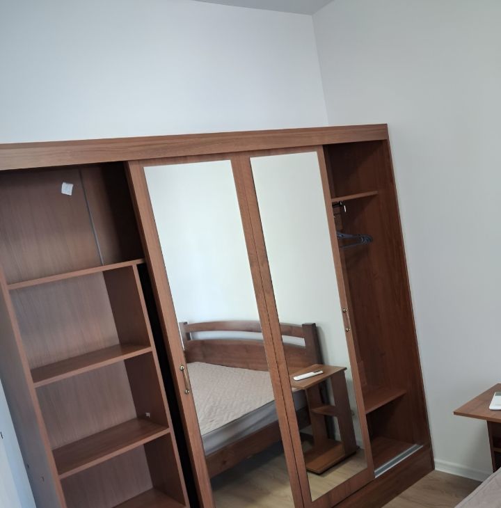 Мебель и техника кухня-гостиная: кухонный гарнитур, рейлинг с навесами, подсветка, плита индукция 2 места, мини печь, микроволновая печь, холодильник, чайник, стол, 4 стула, набор посуды ( кастрюли 2, сковорода, тарелки) кухонные принадлежности, диван раздвижной, комод, ковер шкаф для хранения. Спальня: кровать 160200, матрас, наматрасник, шкаф-купе с зеркальными дверцами, кондиционер. Прихожая: мебель для одежды, обуви, мелочей, зеркало. Ванная: сантехника, зеркало, подсветка, машинка стиральная. Гладильная доска, сушилка для белья, пылесос. Без комиссии. На длительный срок. Возможен вариант без залога.