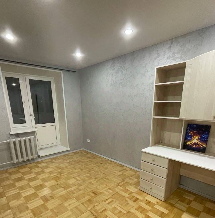 Напольное покрытие - паркет, на стенах декоративная штукатурка, натяжные потолки, ванная комната в плитке.