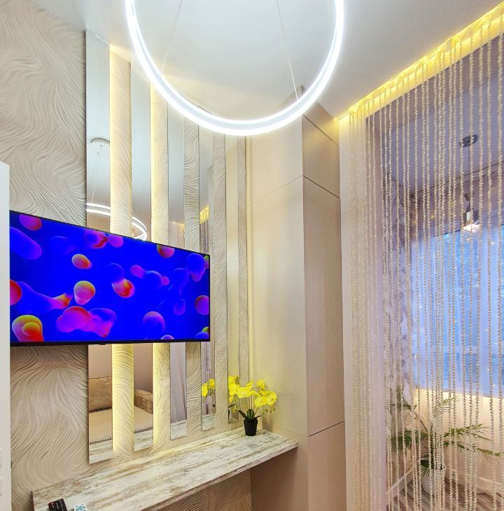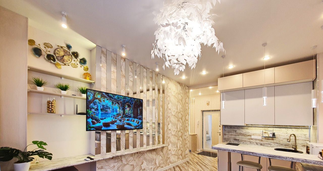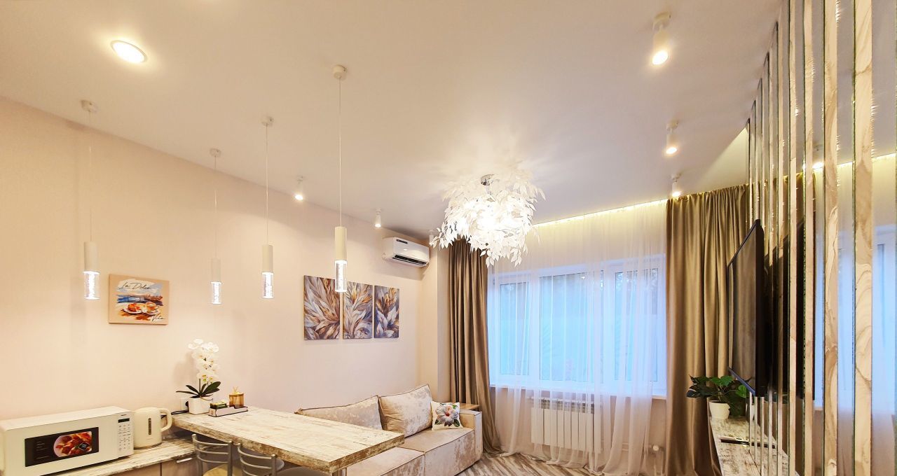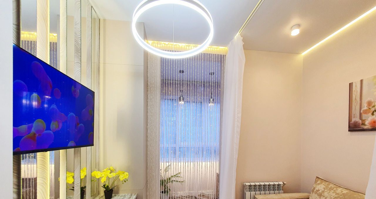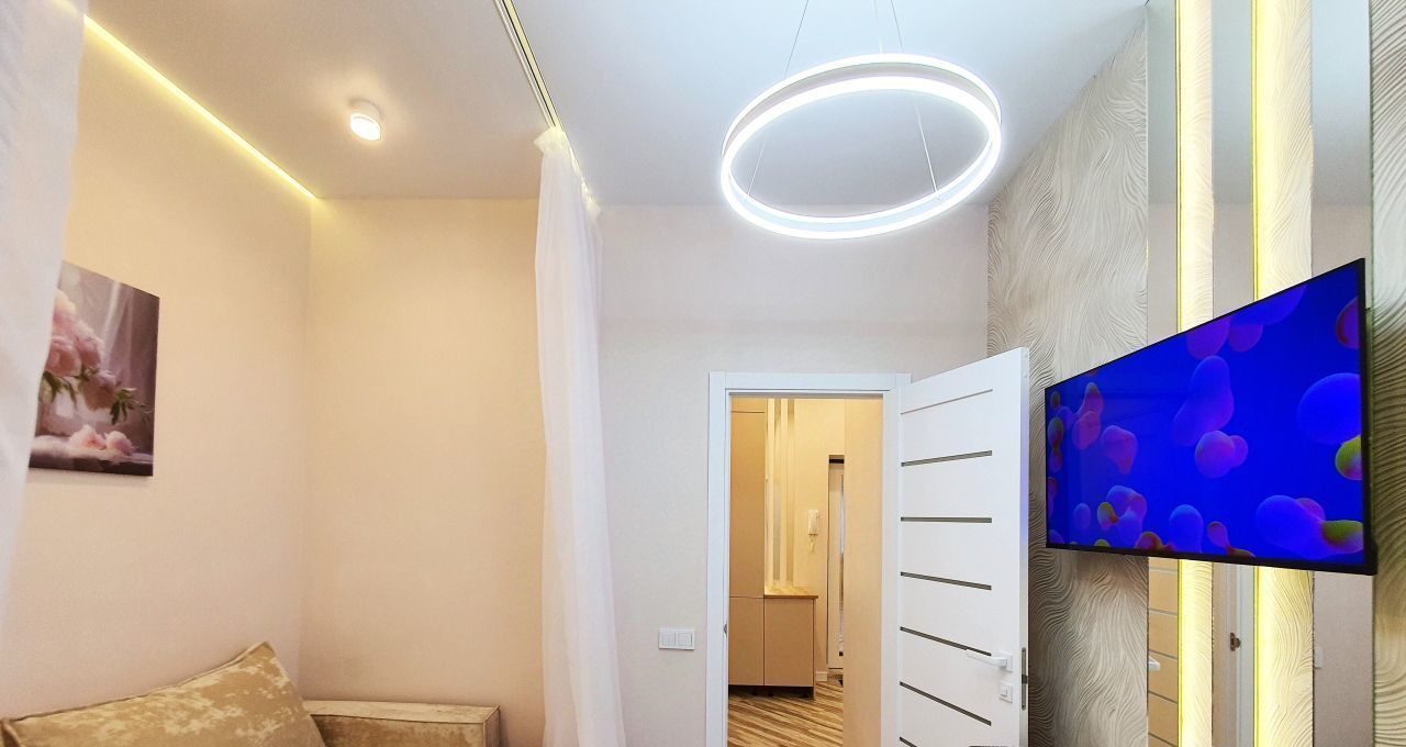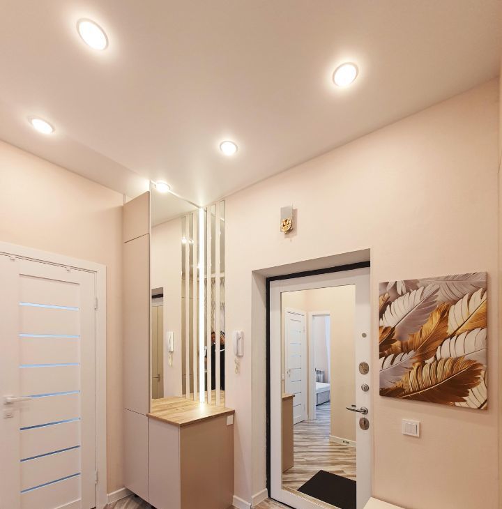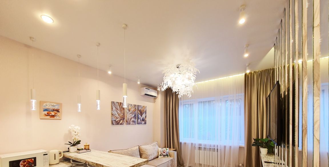 > Натяжные потолки, зонированный мульти-режимный свет во всех помещениях