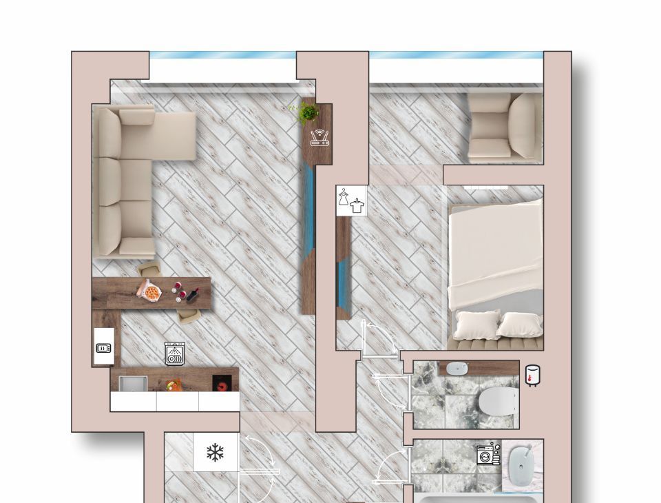 > Wi-Fi роуттер (ТВ и интернет заведены скрытой проводкой и подключены - все уже работает)