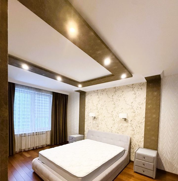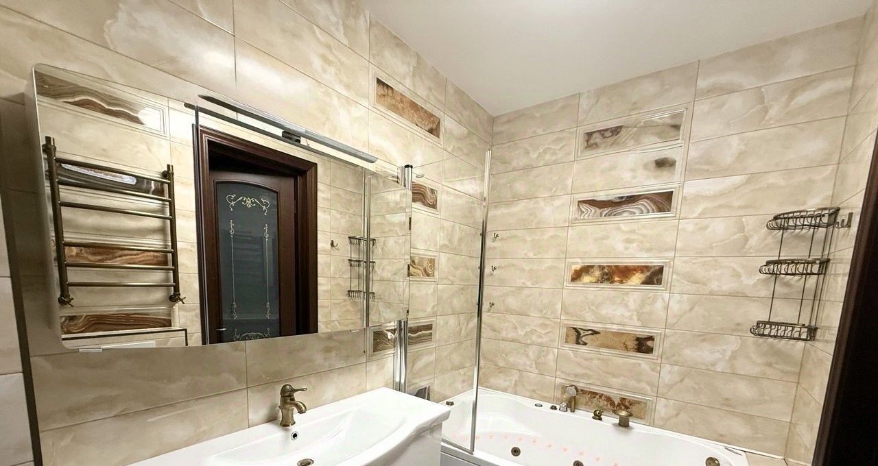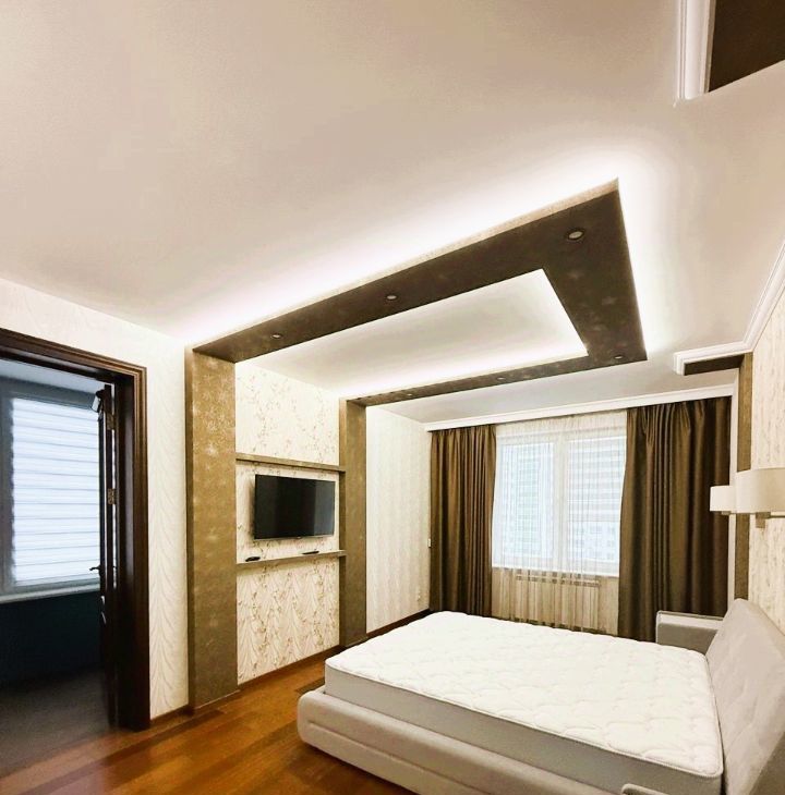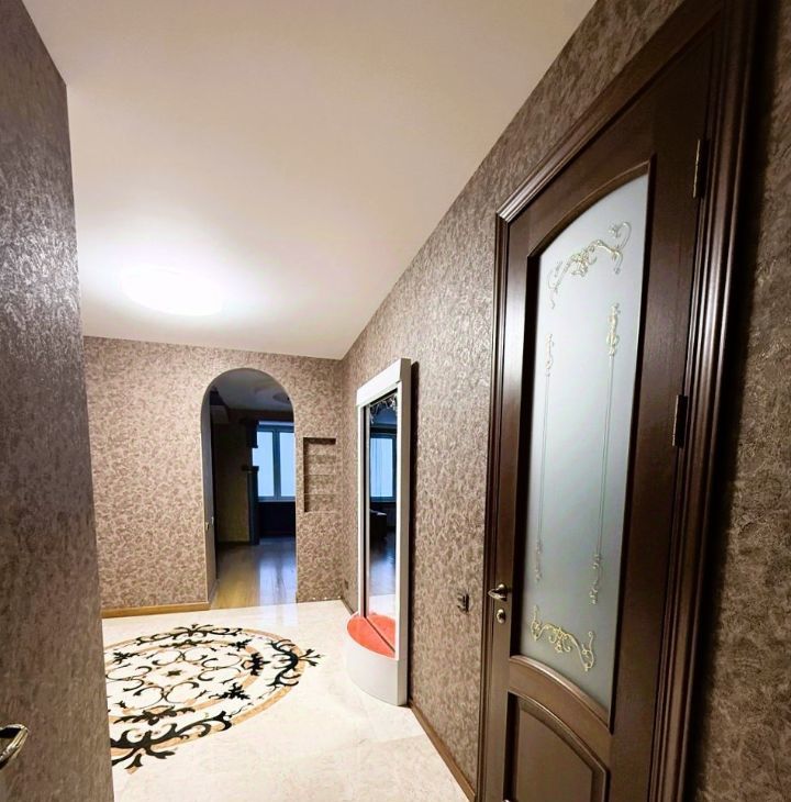В квартире выполнен качественный ремонт; в прихожей и в ванной теплый пол; 2 гардеробные (встроенная и отдельная комната); кондиционер, телевизоры.