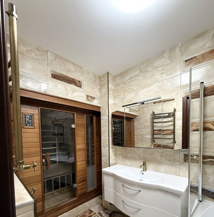 В ванной комнате: сауна (карбоновая), джакузи с функцией светотерапии и системой самоочистки.