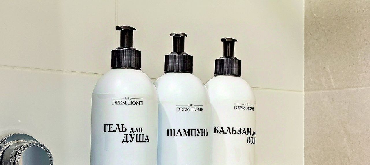 - Туалетные принадлежности: мыло, шампунь, гель для душа, бальзам для волос