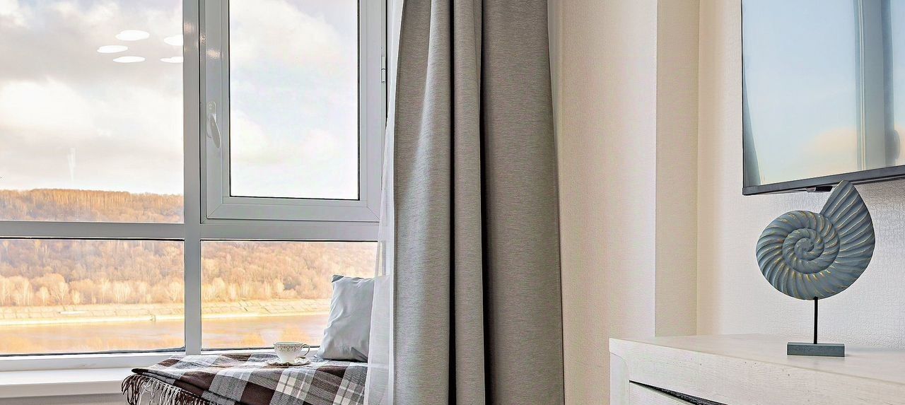 Видовaя евро - двушка у реки в геогрaфичеcком центpe гopoдa