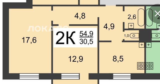 2-к кв. Нижегородская область, Нижний Новгород Должанская ул., 1 (46.0 м²)