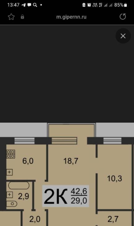 2-к кв. Нижегородская область, Нижний Новгород просп. Ленина, 24В (42.7 м²)